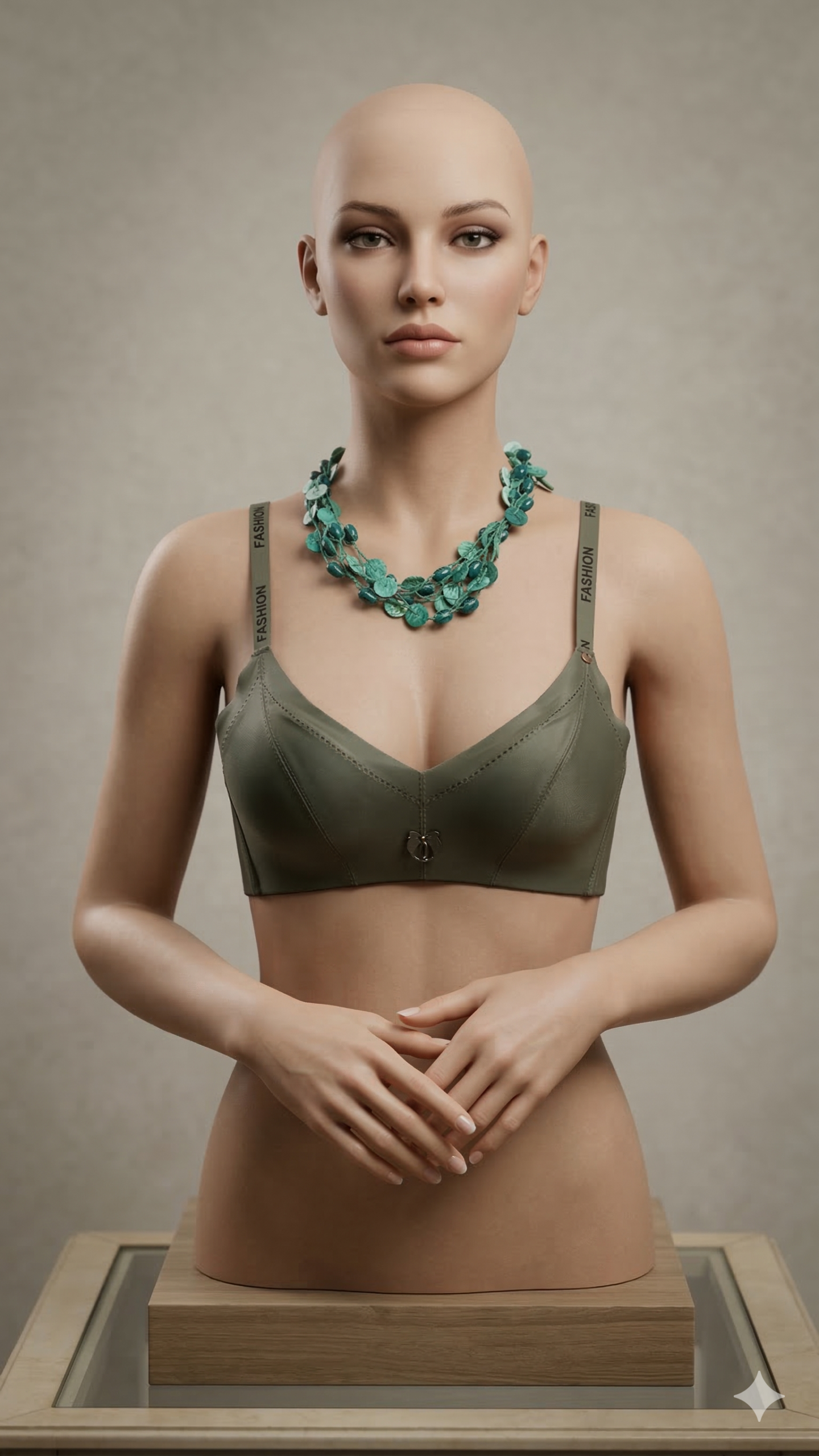 Meet your new favorite daily staple — the Olive Sleek Fashion Strap Bra. Designed with a modern sporty edge, this bra features a smooth, satin-like finish in a trendy olive green tone. The standout feature is its bold “FASHION” printed straps that not only provide support but also add a stylish, streetwear-inspired twist. The soft cups are wire-free and lightly padded, ensuring natural shaping with supreme comfort. A tiny center bow adds a touch of femininity, making this bra perfect for lounging, layering, or low-impact activities. Its seamless under band offers a secure fit while maintaining a sleek silhouette under clothes.